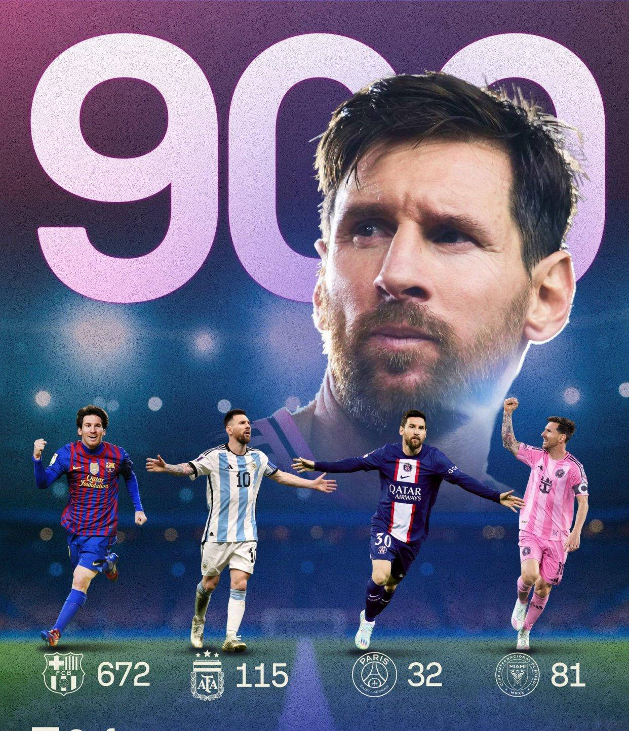 梅西突破900进球里程碑!金球奖、美洲杯及法甲纷纷祝贺